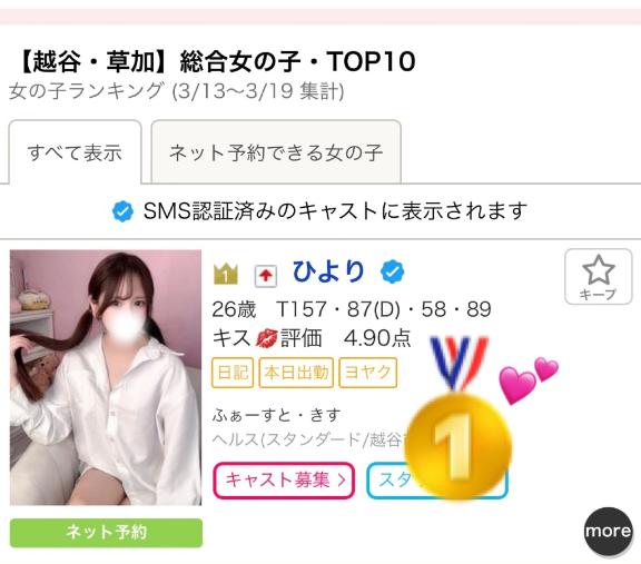 対面して、写真以上に可愛く緊張しました。また、指名したいです。